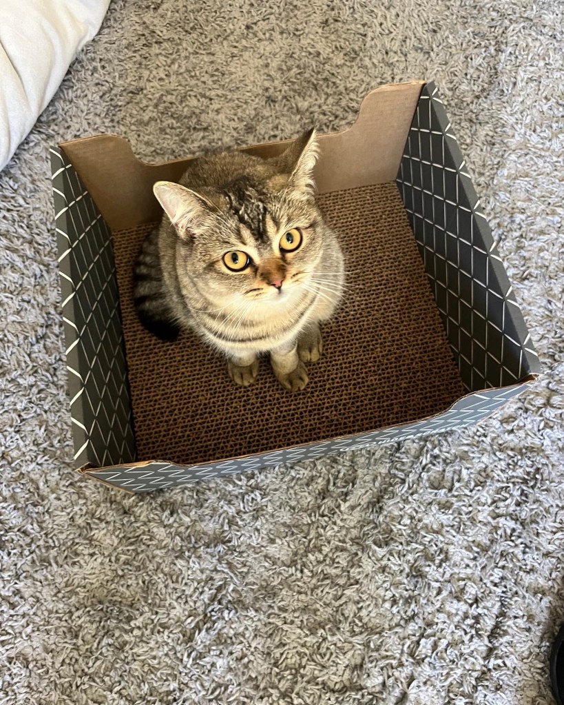 For those of you who have been following along with me since I was just a tiny kitten, you know how much I love my cardboard boxes! The poor humans didn’t dare try to throw them away, probably because they were terrified of the wrath I would unleash if they did so. Anyways, I decided to do them a favor and ordered myself one of these Hide & Scratch boxes- mostly for the convenience of not having to leave my favorite box to go find the scratch pad and sharpen my claws- but also because I knew the humans would prefer it since it’s a lot cuter than those boring ole brown boxes. The Hide & Scratch box ended up being perfect for all of my favorite activities, which include sitting in boxes and sharpening my claws- thanks to Hide & Scratch I can now do both of these at the same time! It’s actually pretty durable as well so I’ve been enjoying the challenge of trying to take a bite out of it- so far unsuccessfully. If you want to surprise your humans with a fun little gift head on over to https://www.hideandscratch.com/?ref=MadamFloof and use my code MADAMFLOOF10 to get yourself 10% off. Happy hiding and happy scratching! Meowww!